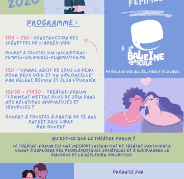 Rendez-vous à 10h le 8 Mars à la Baleine à Bascule pour construire des scénettes qui seront jouées l'après-midi et remodelées par les suggestions du public !
