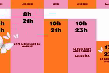 Les temps forts du restaurant : Déj du mercredi / apéro dîner du vendredi / restô du samedi. Tout est toujours frais et fait maison.